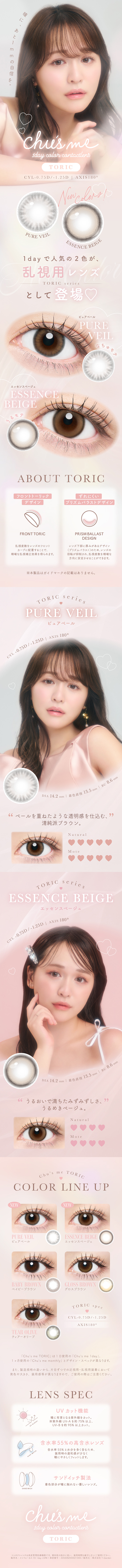 #カラコン #ワンデー #UVカット #高含水 #うるおい #MPCポリマー #ベージュ #1day #Chu'sme #ゆうこすカラコン #菅本裕子 #乱視用 #トーリック #202604新発売 #カラコン乱視